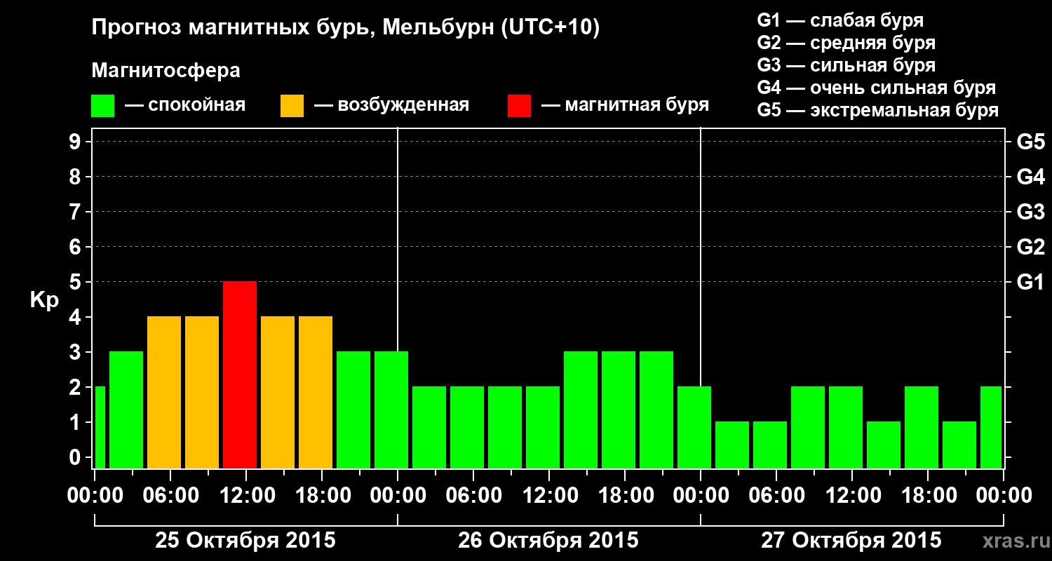 Прогноз магнитных бурь в Мельбурне — 25 октября 2015 года