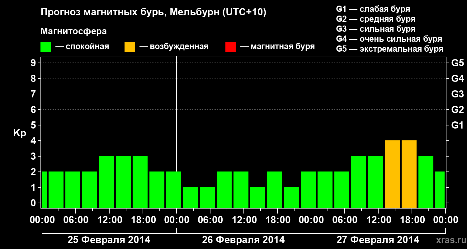 Прогноз магнитных бурь в Мельбурне — 25 февраля 2014 года