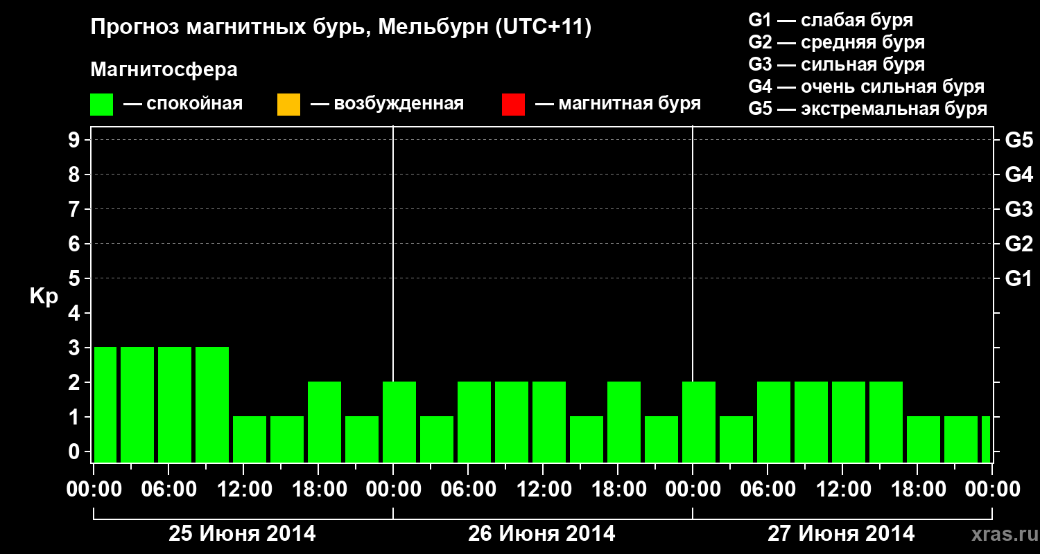 Прогноз магнитных бурь в Мельбурне — 25 июня 2014 года