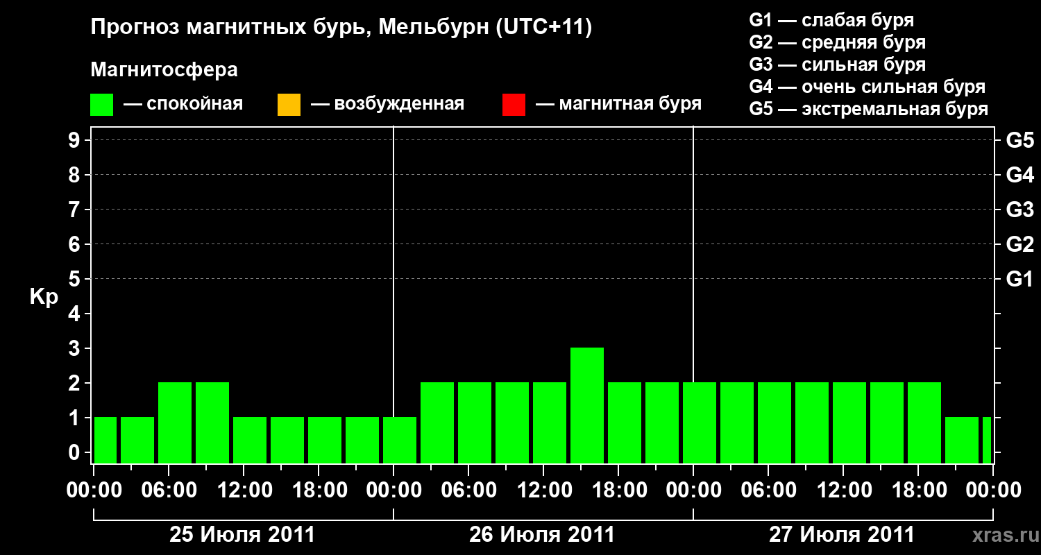 Прогноз магнитных бурь в Мельбурне — 25 июля 2011 года