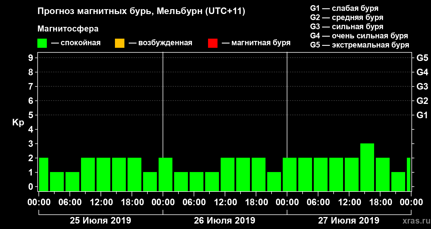 Прогноз магнитных бурь в Мельбурне — 25 июля 2019 года