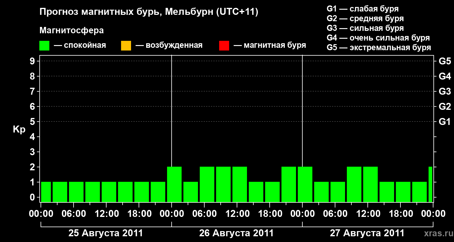 Прогноз магнитных бурь в Мельбурне — 25 августа 2011 года