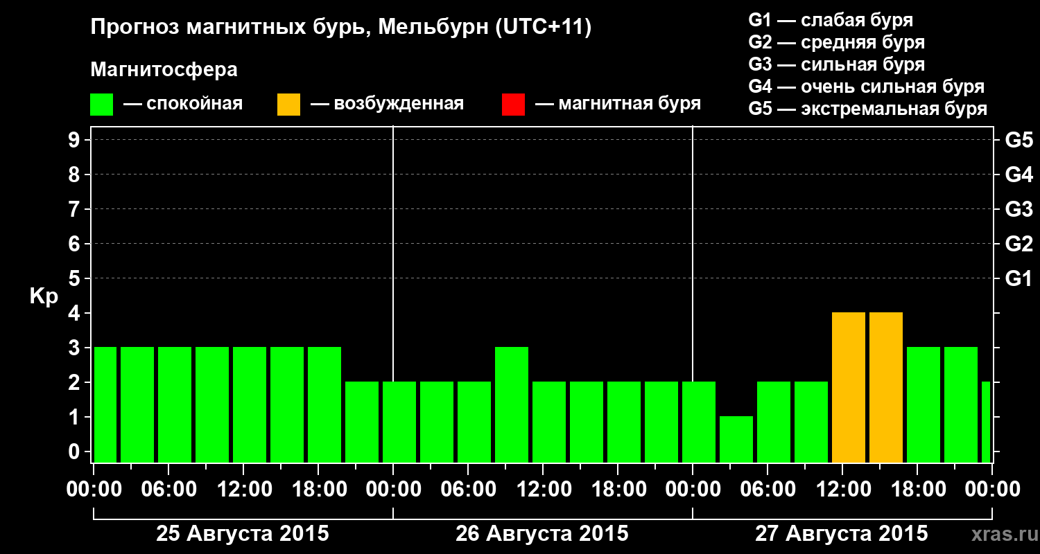 Прогноз магнитных бурь в Мельбурне — 25 августа 2015 года