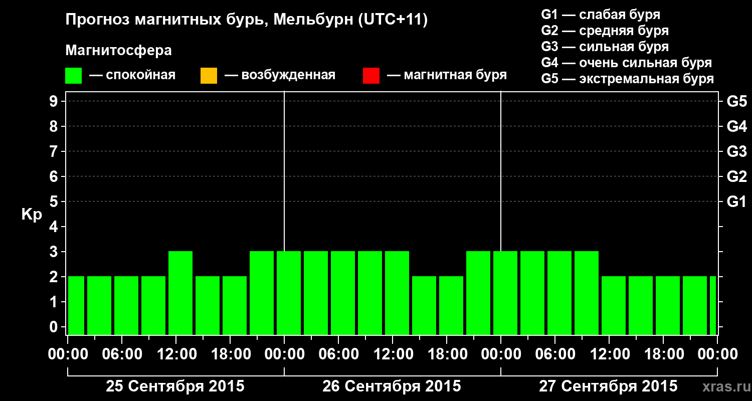 Прогноз магнитных бурь в Мельбурне — 25 сентября 2015 года