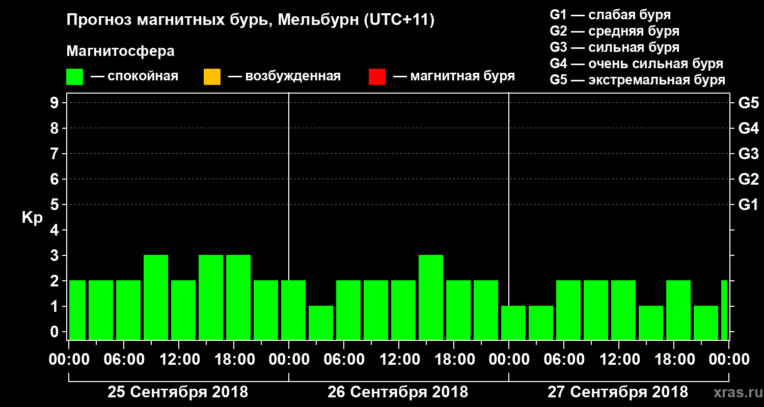 Прогноз магнитных бурь в Мельбурне — 25 сентября 2018 года