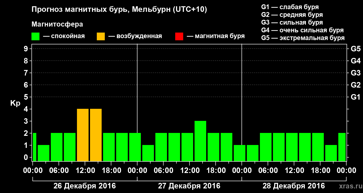 Прогноз магнитных бурь в Мельбурне — 26 декабря 2016 года