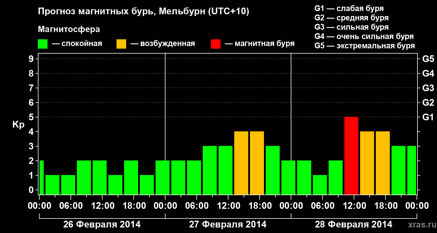 Прогноз магнитных бурь в Мельбурне — 26 февраля 2014 года