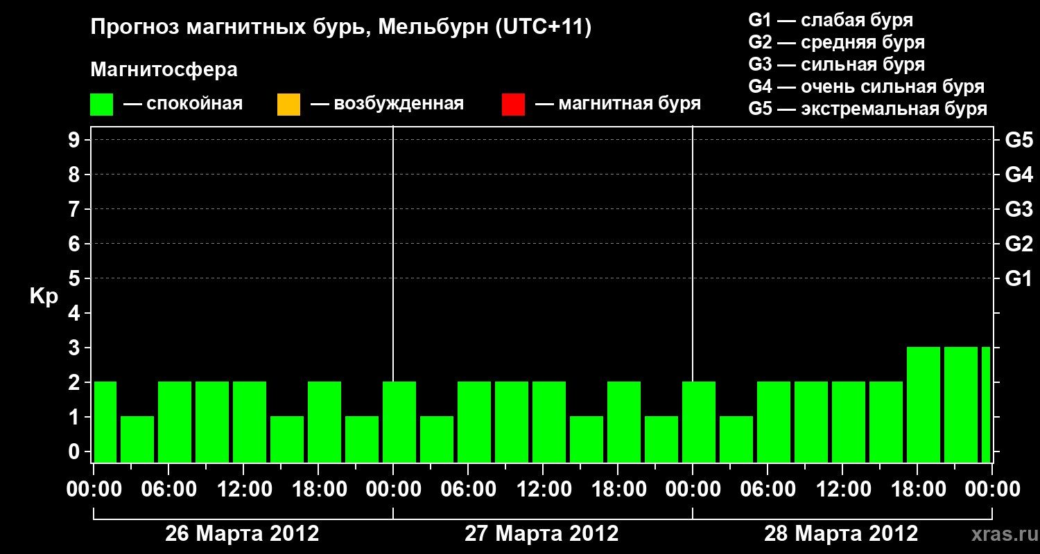 Прогноз магнитных бурь в Мельбурне — 26 марта 2012 года