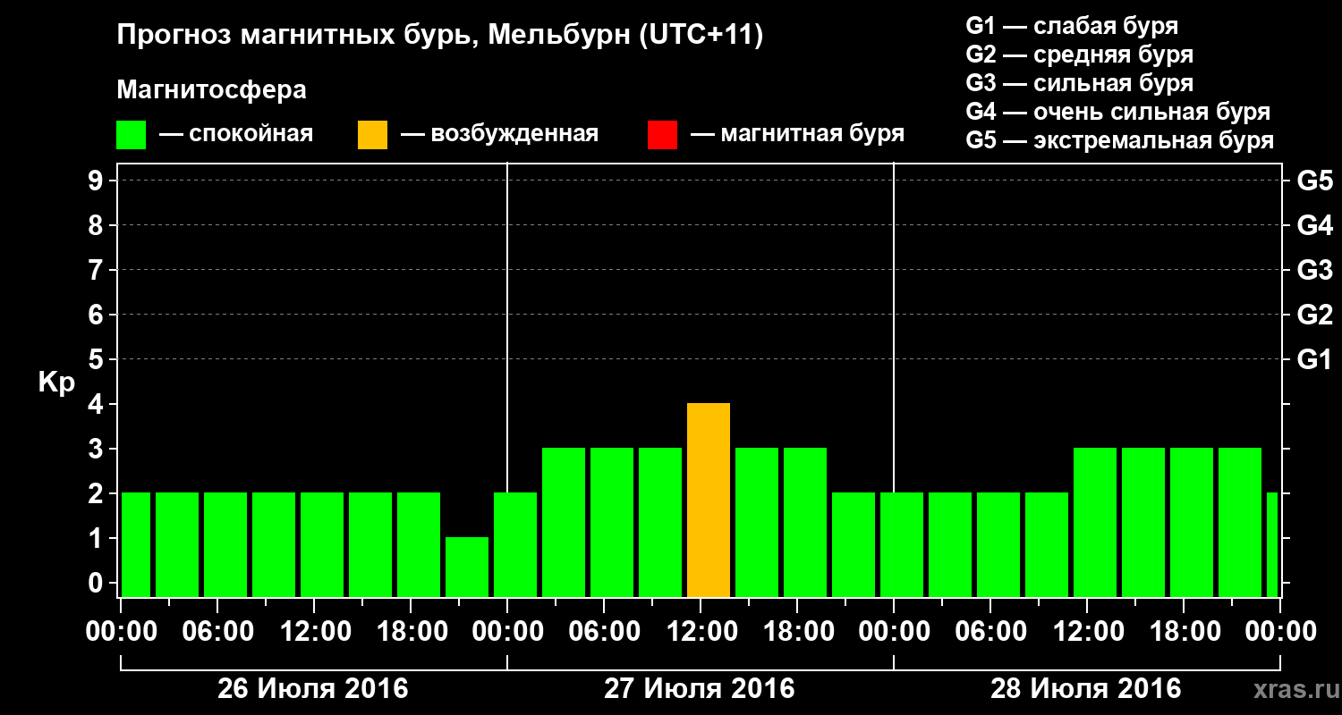 Прогноз магнитных бурь в Мельбурне — 26 июля 2016 года
