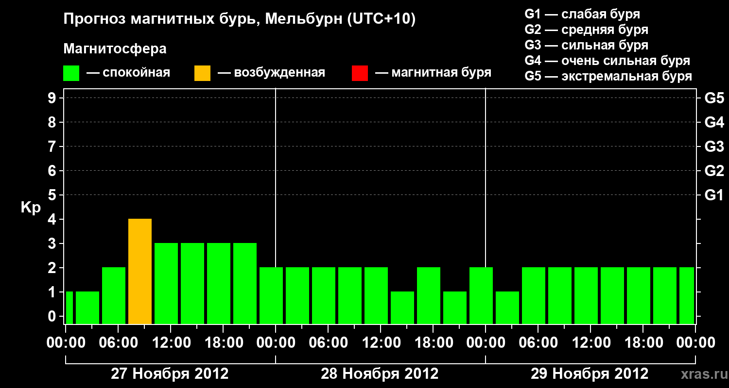 Прогноз магнитных бурь в Мельбурне — 27 ноября 2012 года