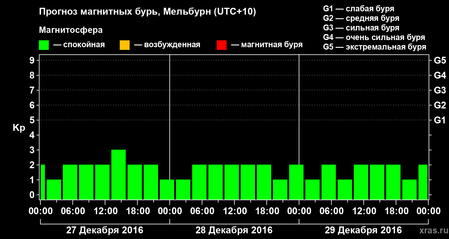 Прогноз магнитных бурь в Мельбурне — 27 декабря 2016 года