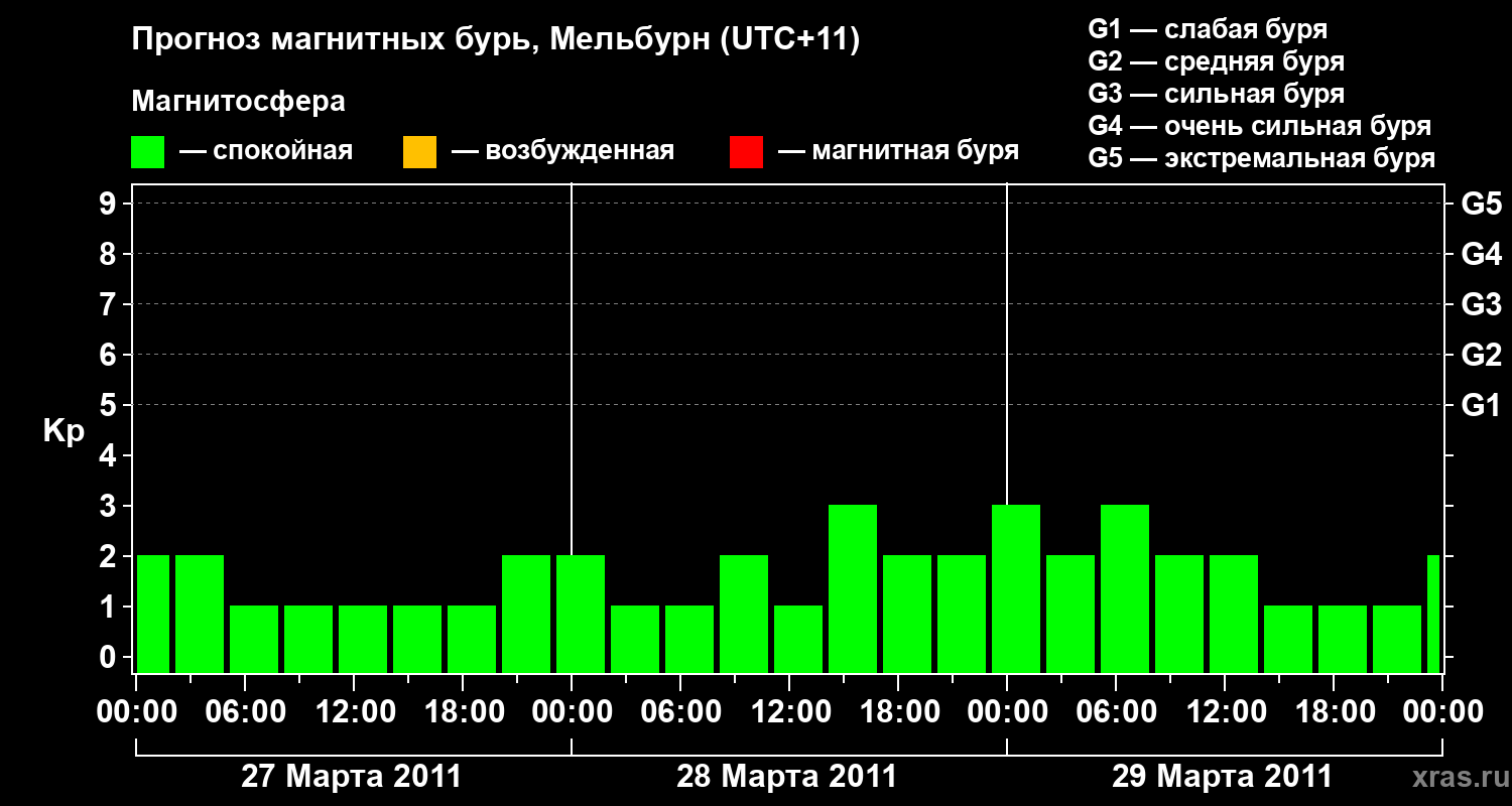 Прогноз магнитных бурь в Мельбурне — 27 марта 2011 года