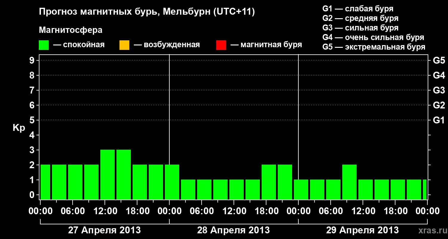 Прогноз магнитных бурь в Мельбурне — 27 апреля 2013 года