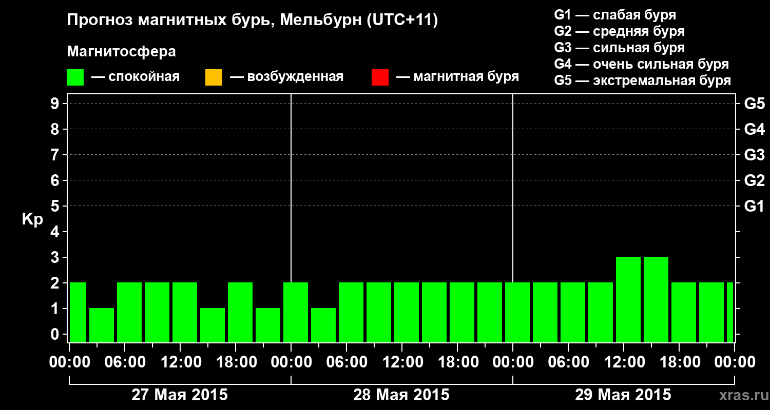 Прогноз магнитных бурь в Мельбурне — 27 мая 2015 года