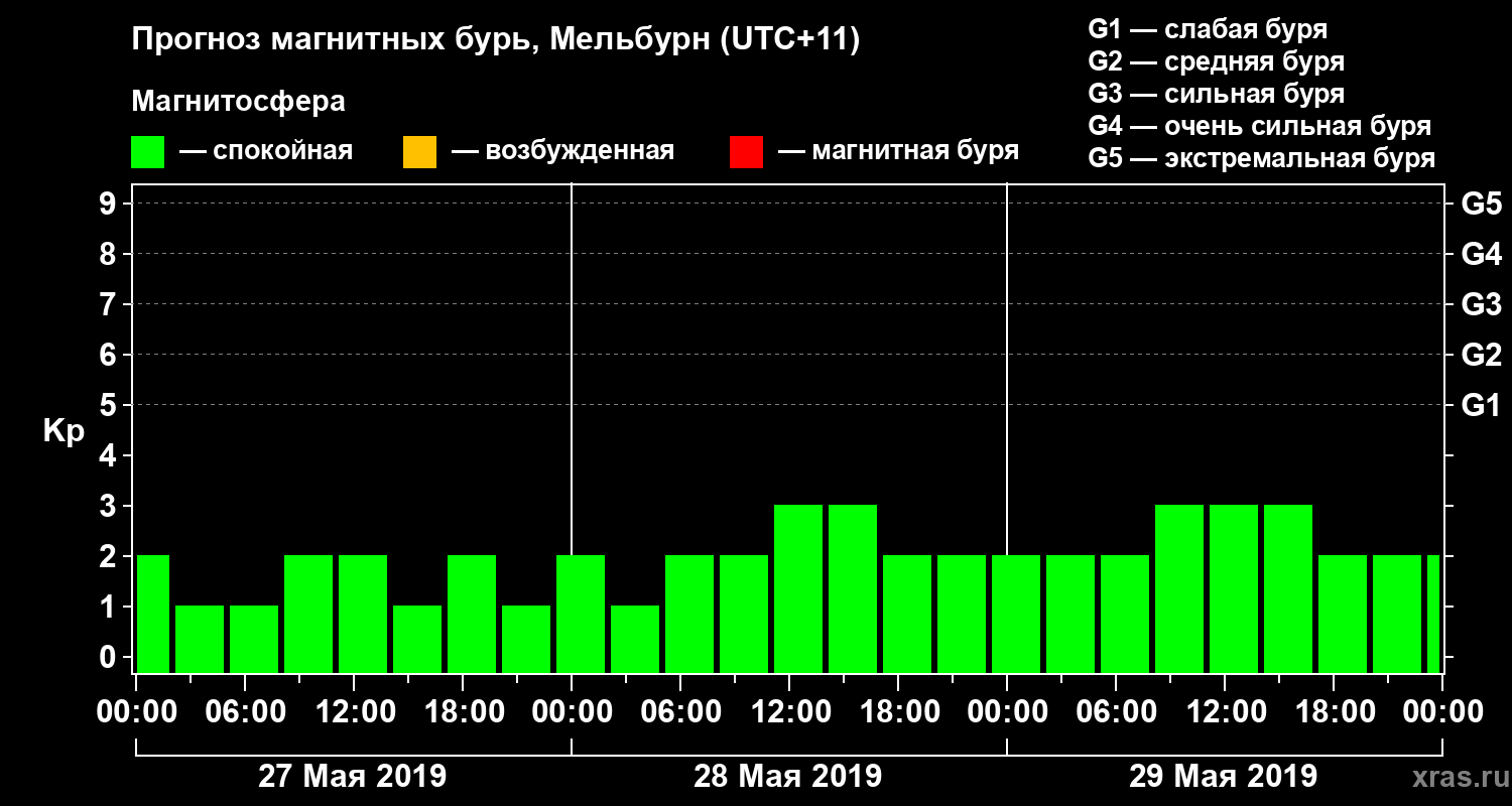 Прогноз магнитных бурь в Мельбурне — 27 мая 2019 года