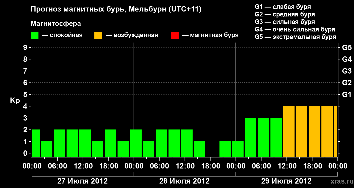 Прогноз магнитных бурь в Мельбурне — 27 июля 2012 года