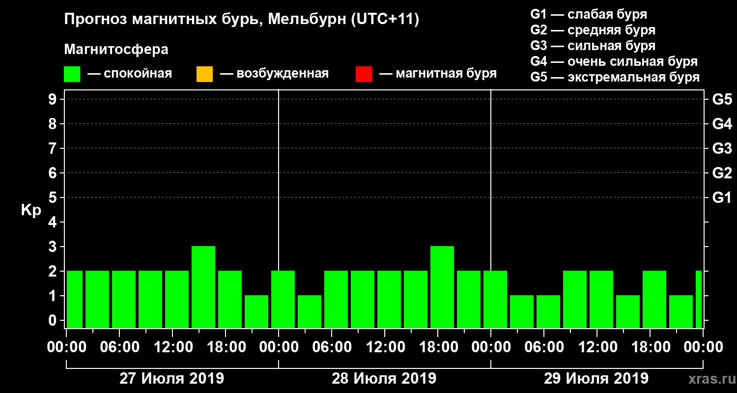 Прогноз магнитных бурь в Мельбурне — 27 июля 2019 года