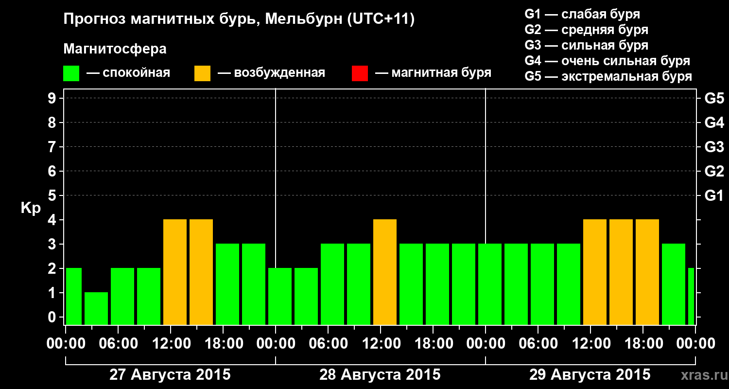 Прогноз магнитных бурь в Мельбурне — 27 августа 2015 года