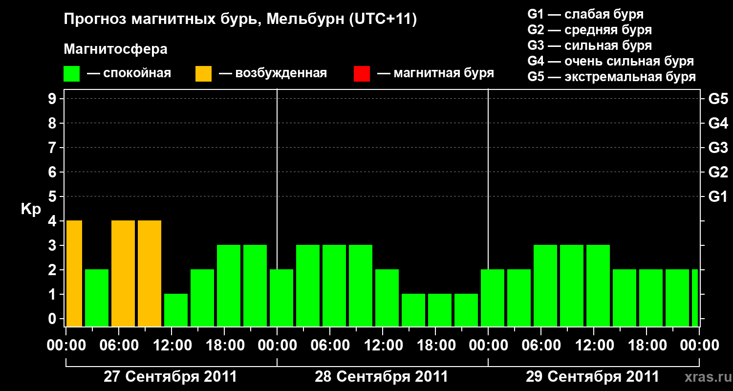 Прогноз магнитных бурь в Мельбурне — 27 сентября 2011 года