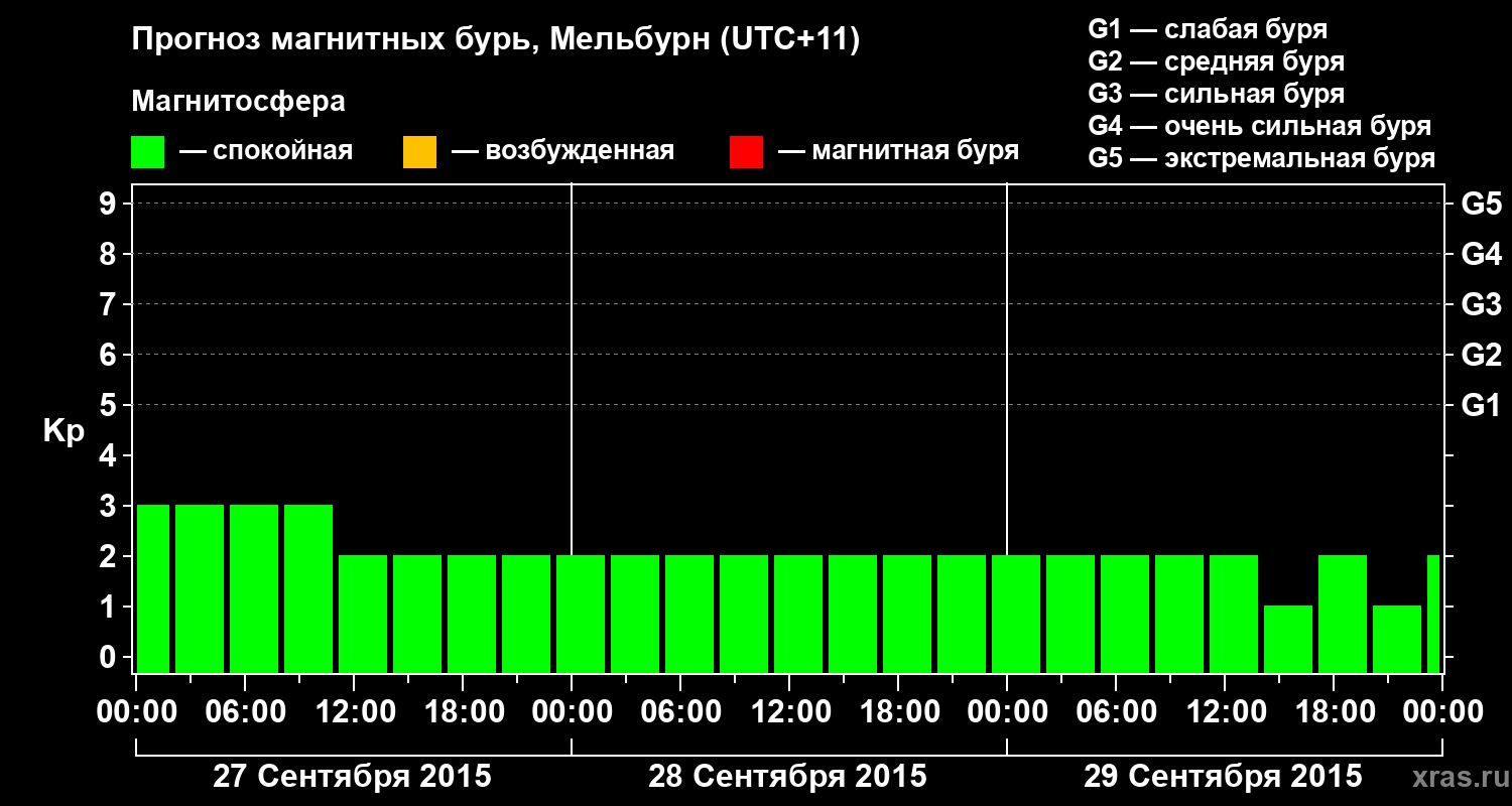 Прогноз магнитных бурь в Мельбурне — 27 сентября 2015 года