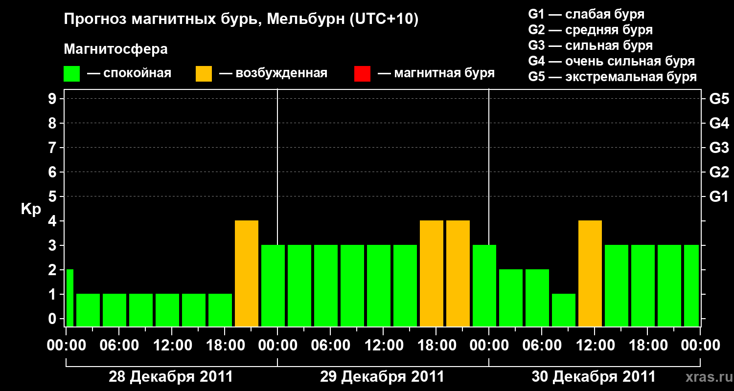 Прогноз магнитных бурь в Мельбурне — 28 декабря 2011 года