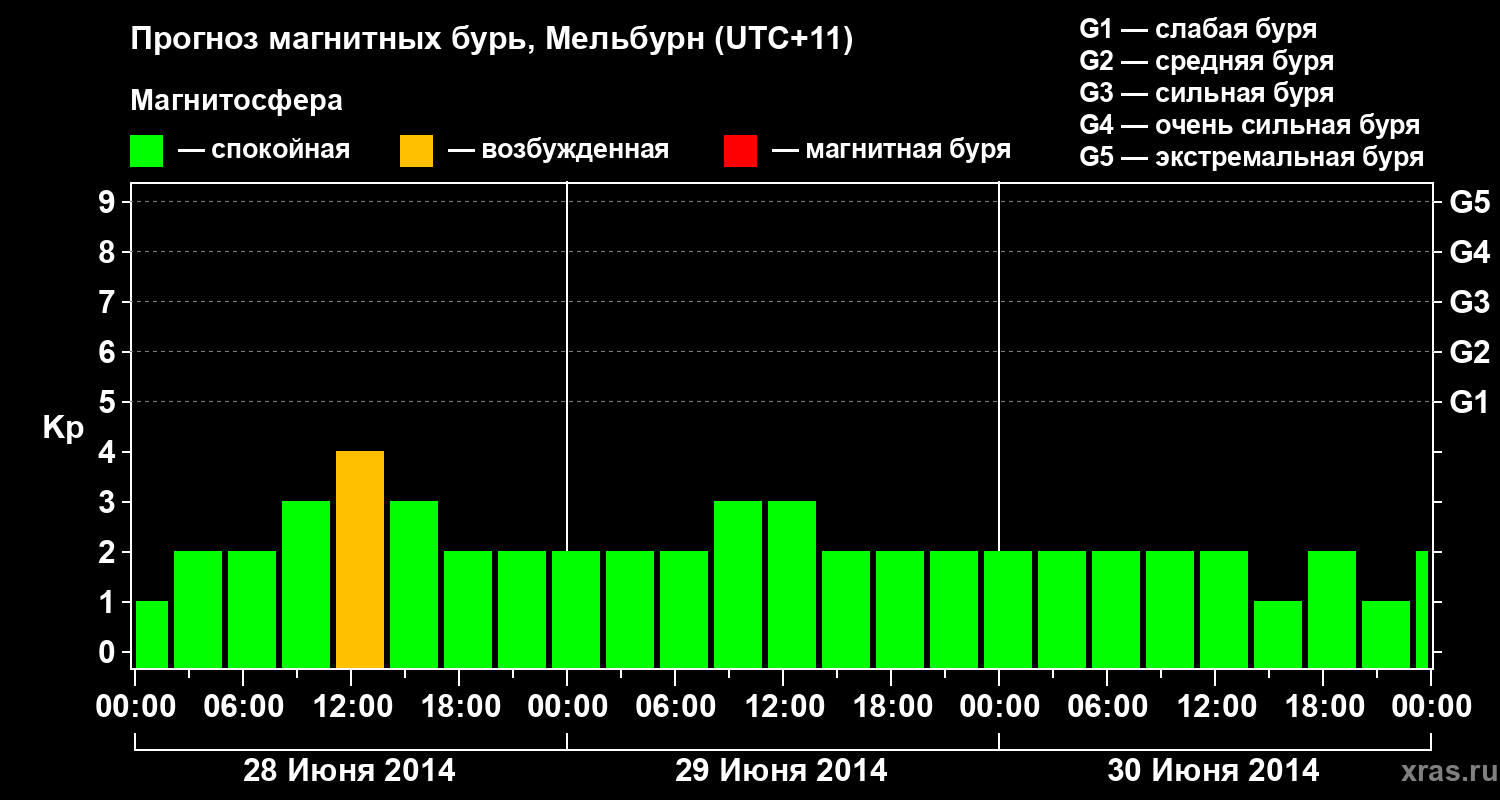 Прогноз магнитных бурь в Мельбурне — 28 июня 2014 года