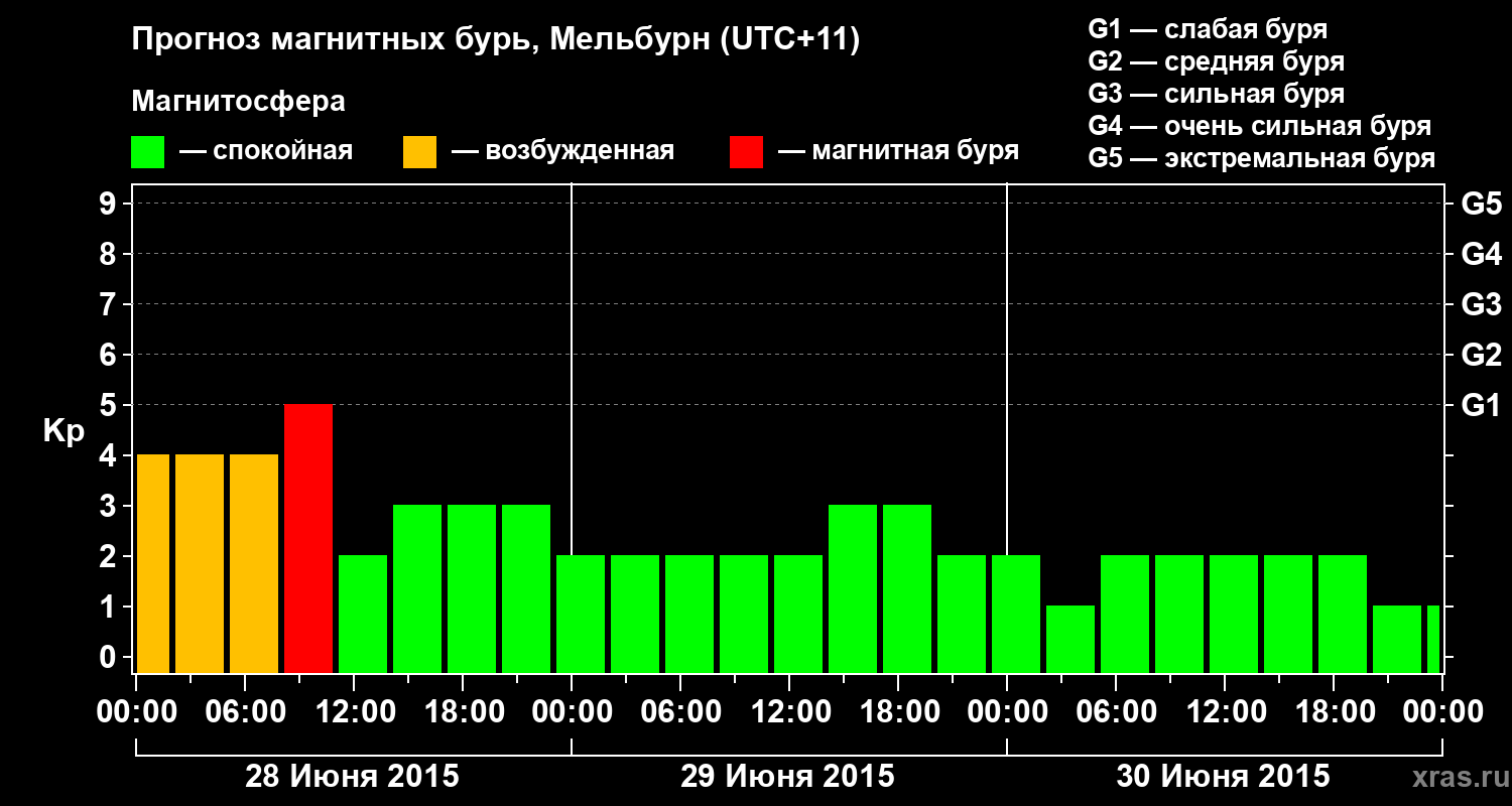 Прогноз магнитных бурь в Мельбурне — 28 июня 2015 года