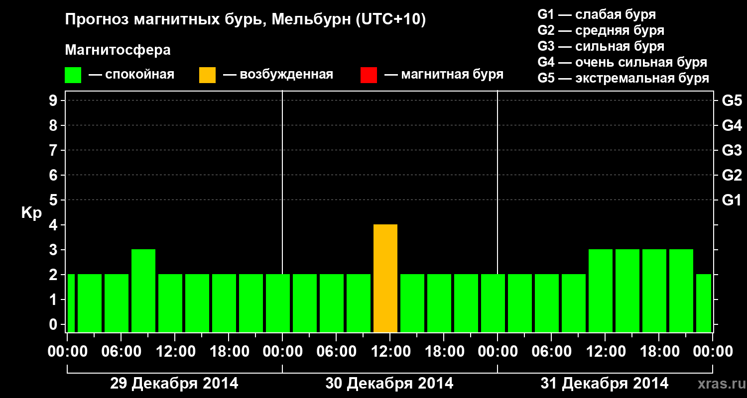 Прогноз магнитных бурь в Мельбурне — 29 декабря 2014 года