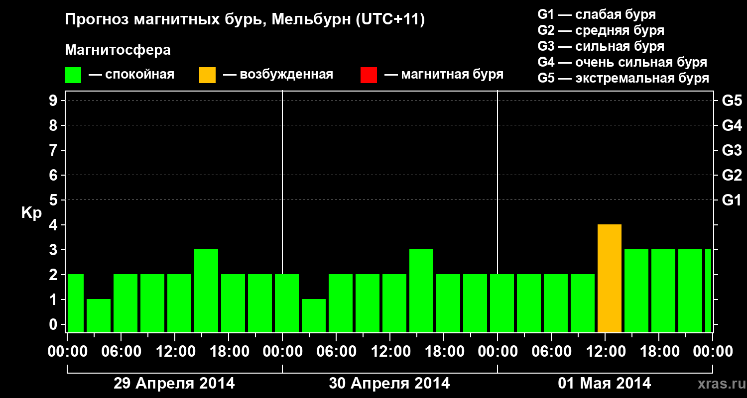 Прогноз магнитных бурь в Мельбурне — 29 апреля 2014 года
