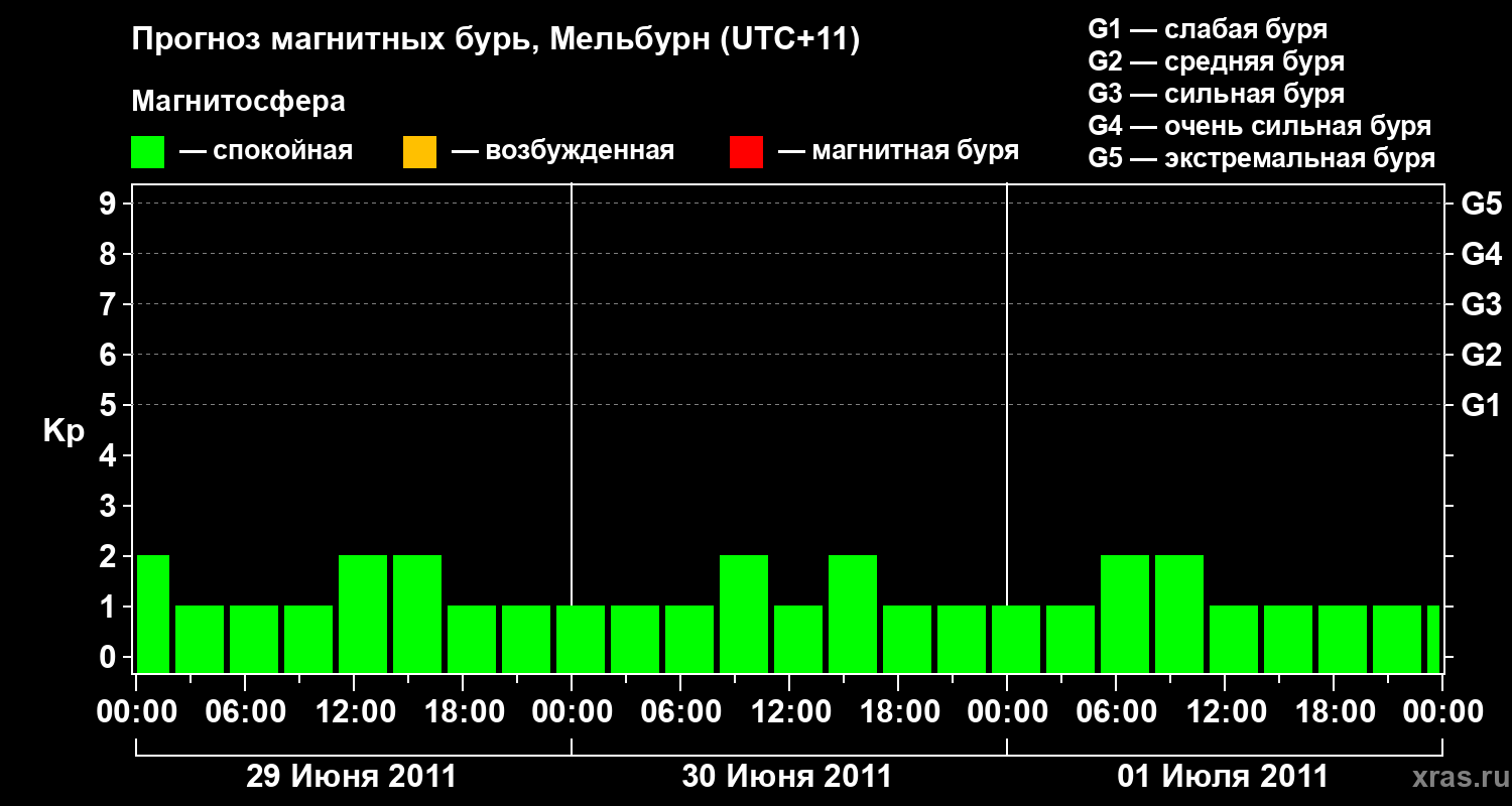 Прогноз магнитных бурь в Мельбурне — 29 июня 2011 года
