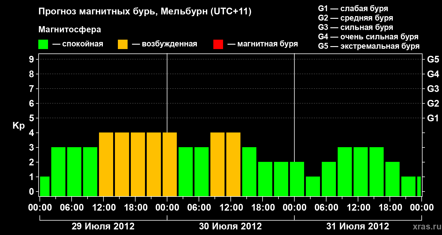 Прогноз магнитных бурь в Мельбурне — 29 июля 2012 года