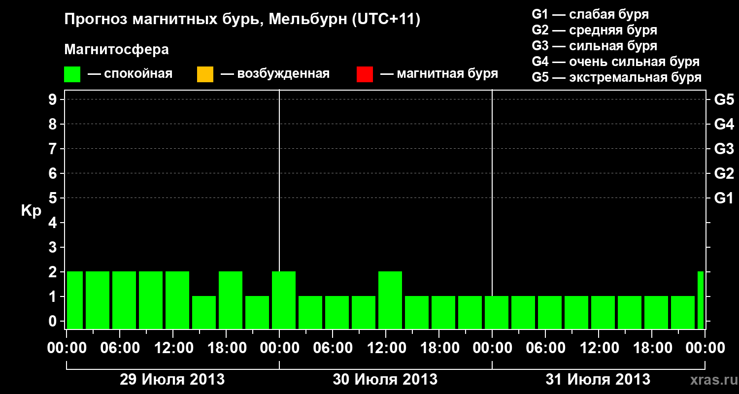 Прогноз магнитных бурь в Мельбурне — 29 июля 2013 года