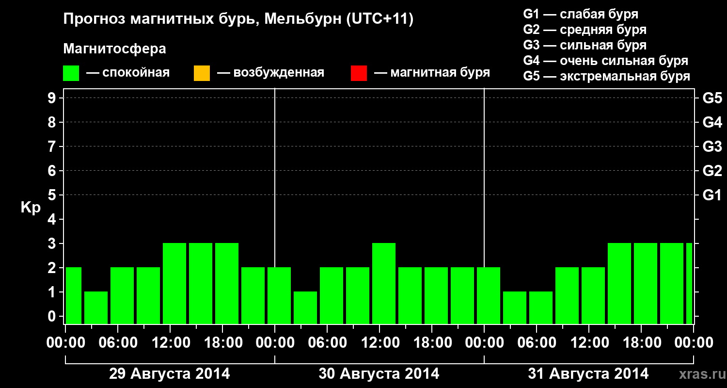 Прогноз магнитных бурь в Мельбурне — 29 августа 2014 года