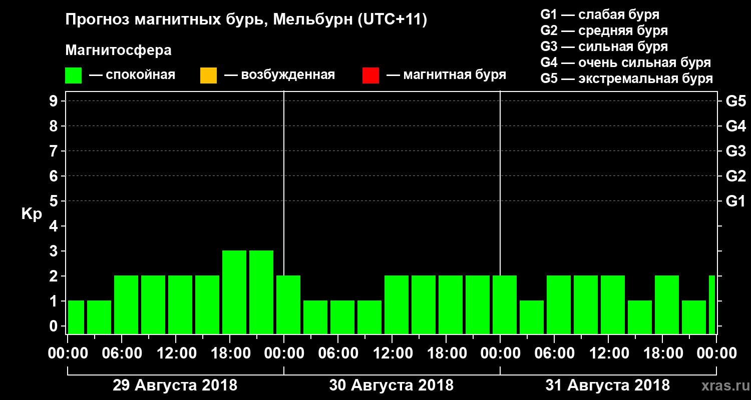 Прогноз магнитных бурь в Мельбурне — 29 августа 2018 года