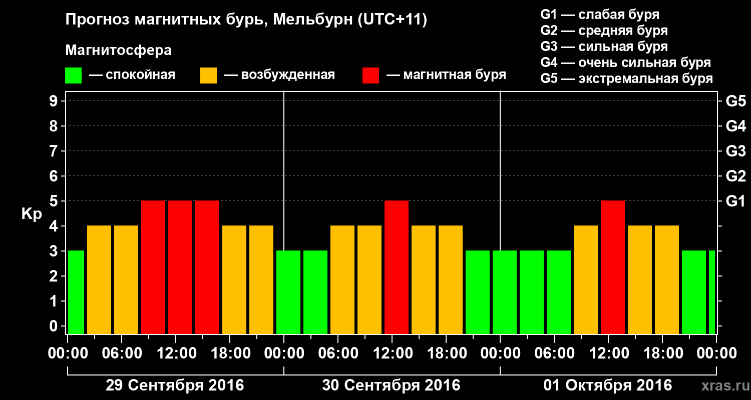 Прогноз магнитных бурь в Мельбурне — 29 сентября 2016 года