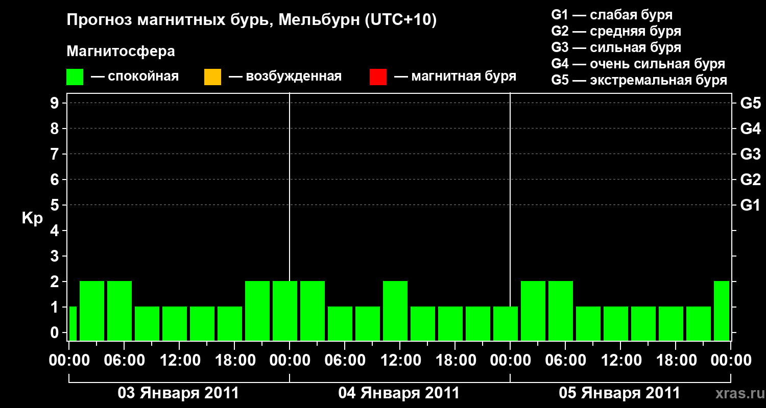 Прогноз магнитных бурь в Мельбурне — 3 января 2011 года