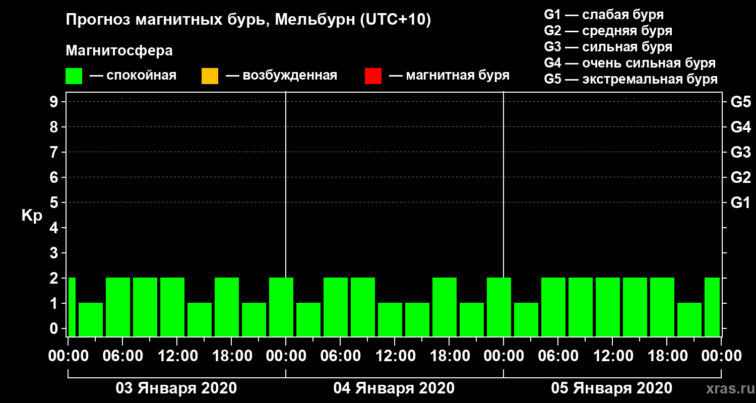 Прогноз магнитных бурь в Мельбурне — 3 января 2020 года
