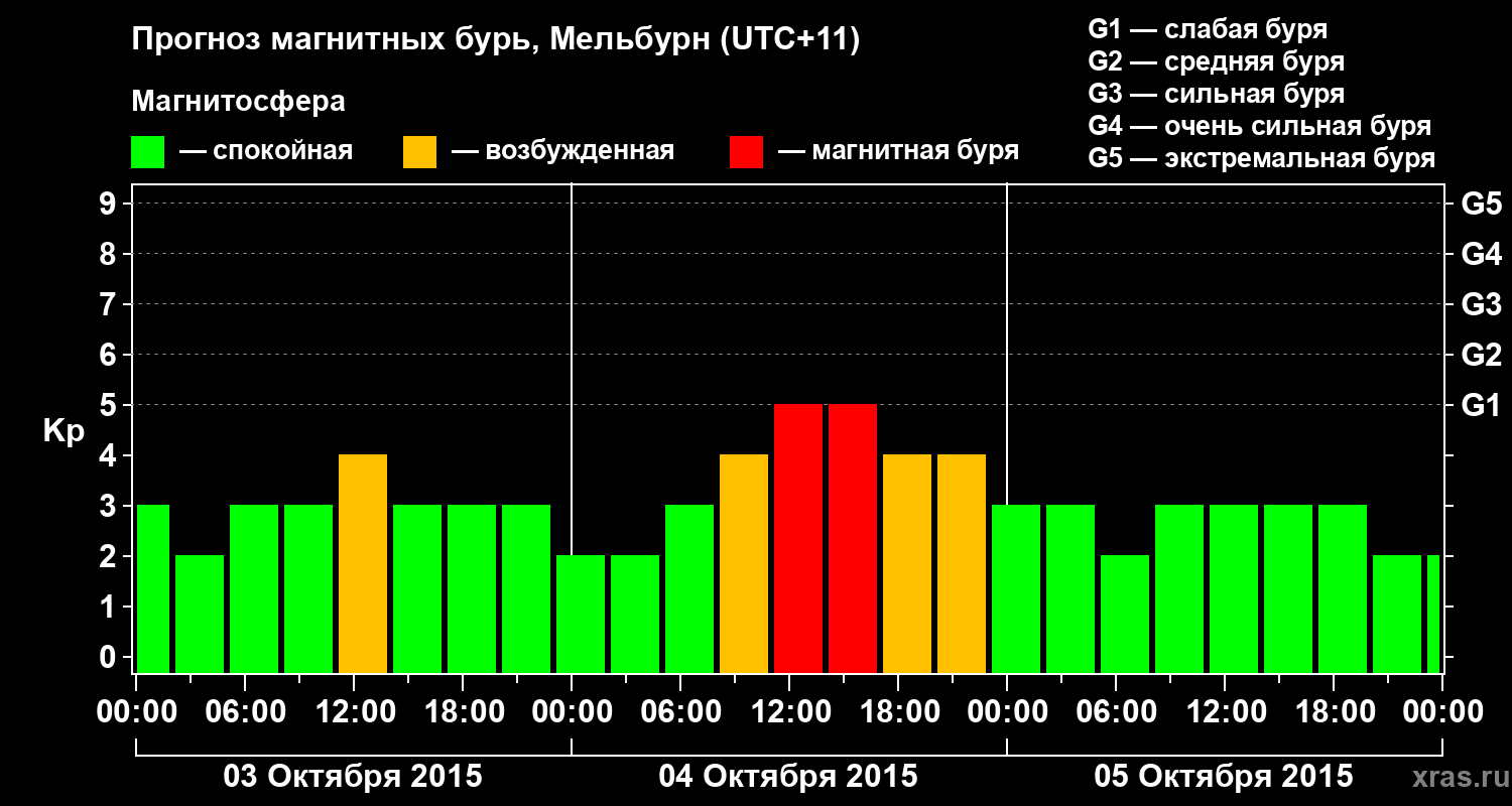Прогноз магнитных бурь в Мельбурне — 3 октября 2015 года