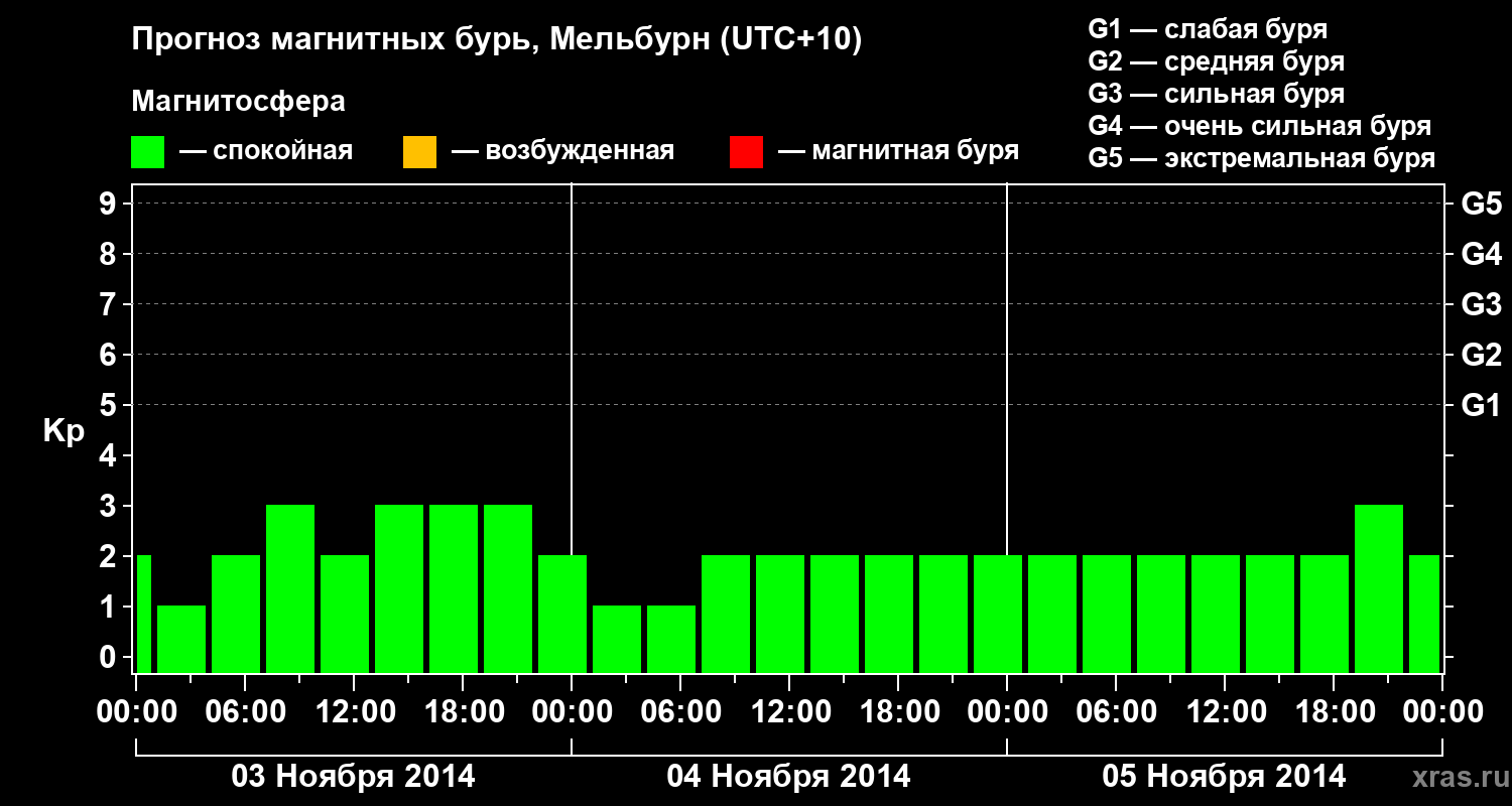 Прогноз магнитных бурь в Мельбурне — 3 ноября 2014 года