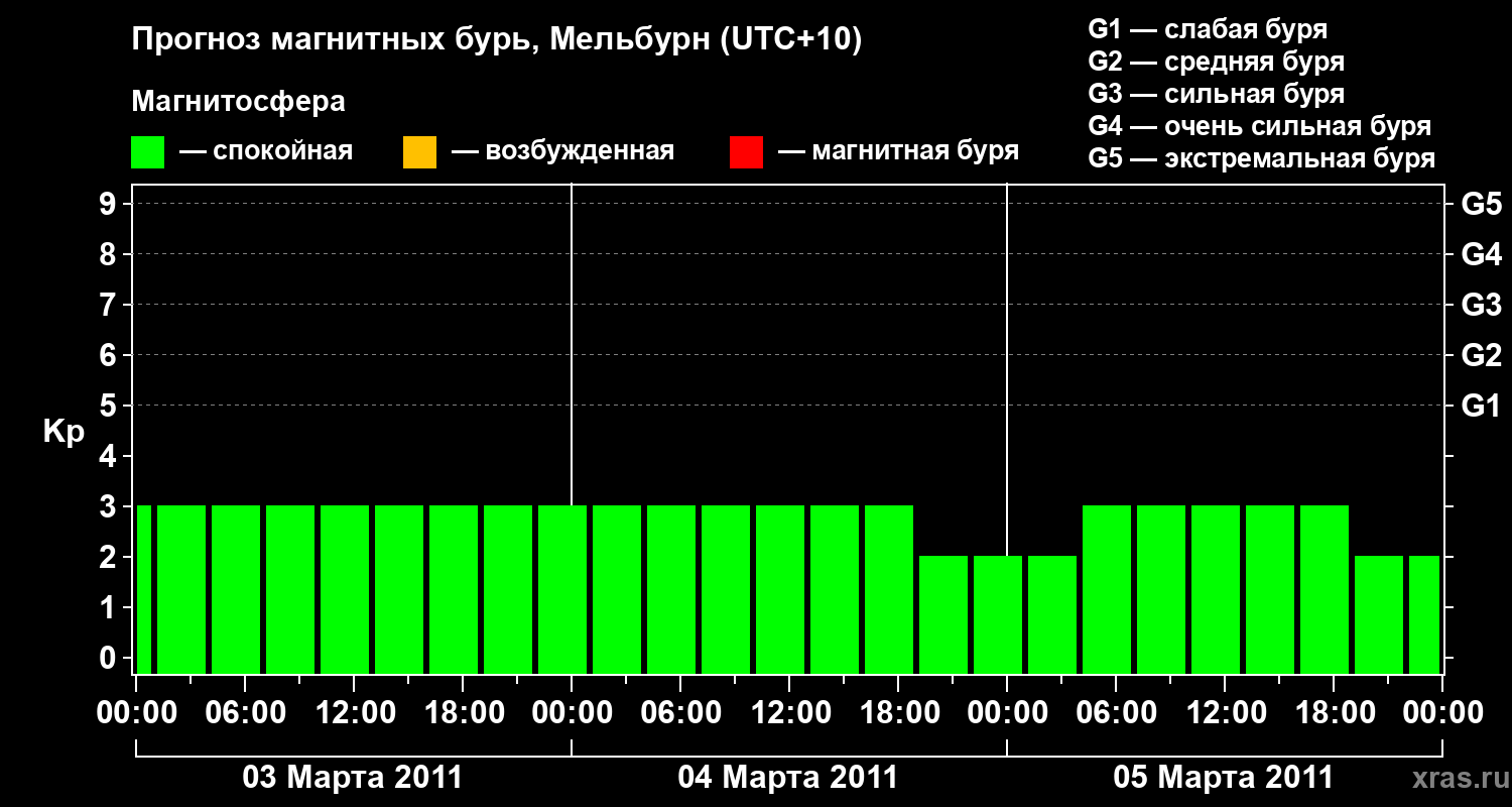 Прогноз магнитных бурь в Мельбурне — 3 марта 2011 года