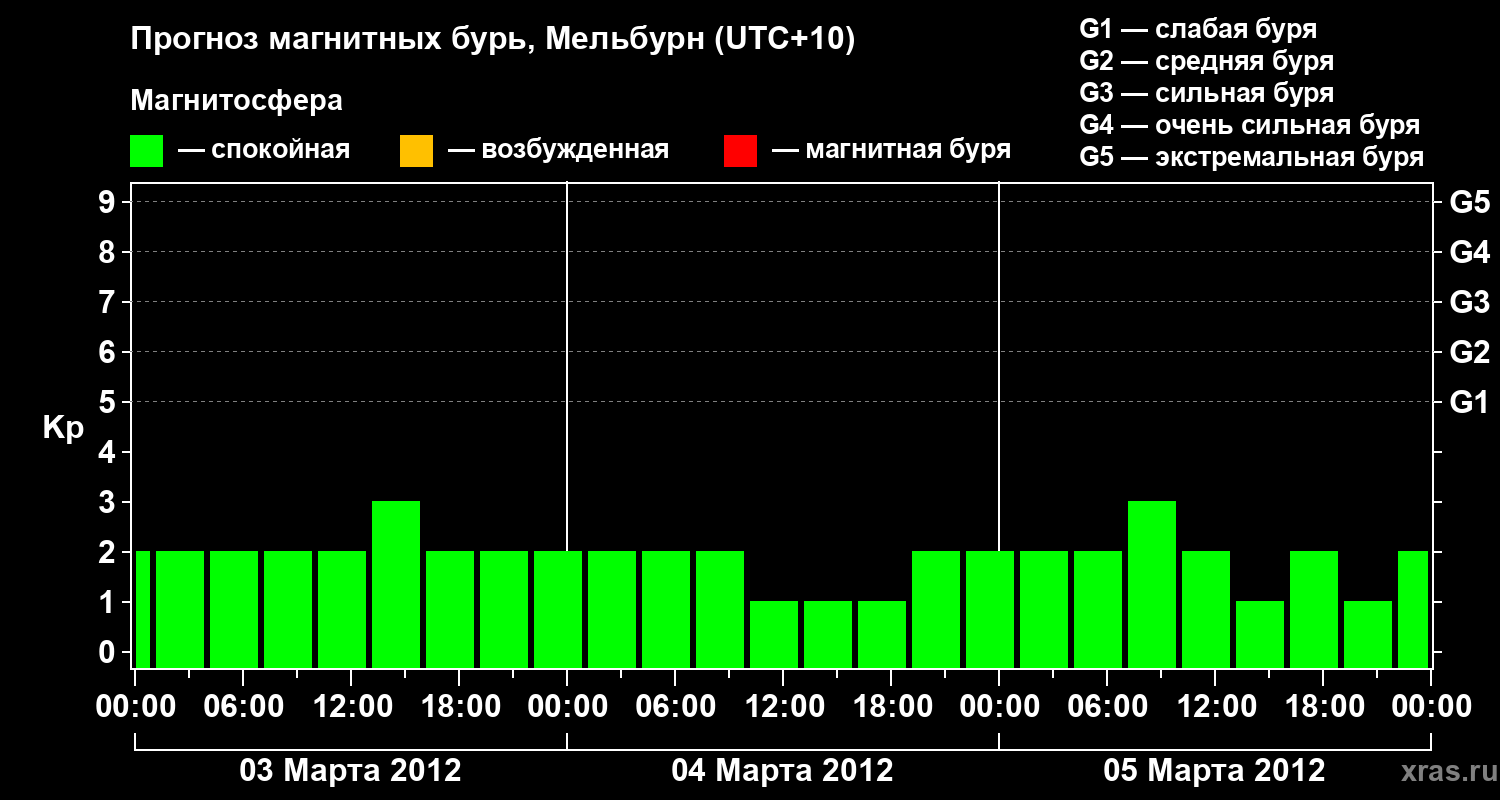 Прогноз магнитных бурь в Мельбурне — 3 марта 2012 года