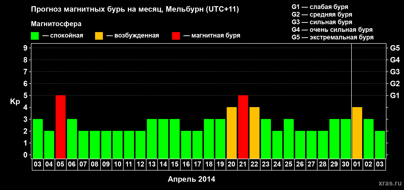 Прогноз магнитных бурь в Мельбурне — 3 апреля 2014 года