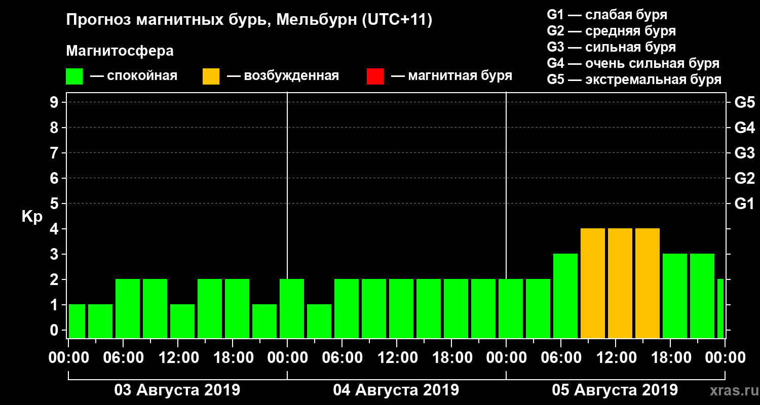 Прогноз магнитных бурь в Мельбурне — 3 августа 2019 года