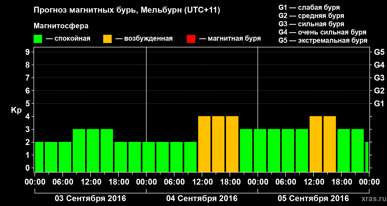 Прогноз магнитных бурь в Мельбурне — 3 сентября 2016 года