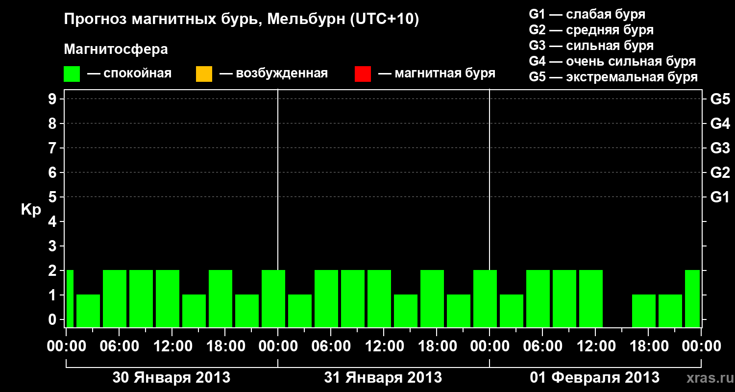 Прогноз магнитных бурь в Мельбурне — 30 января 2013 года