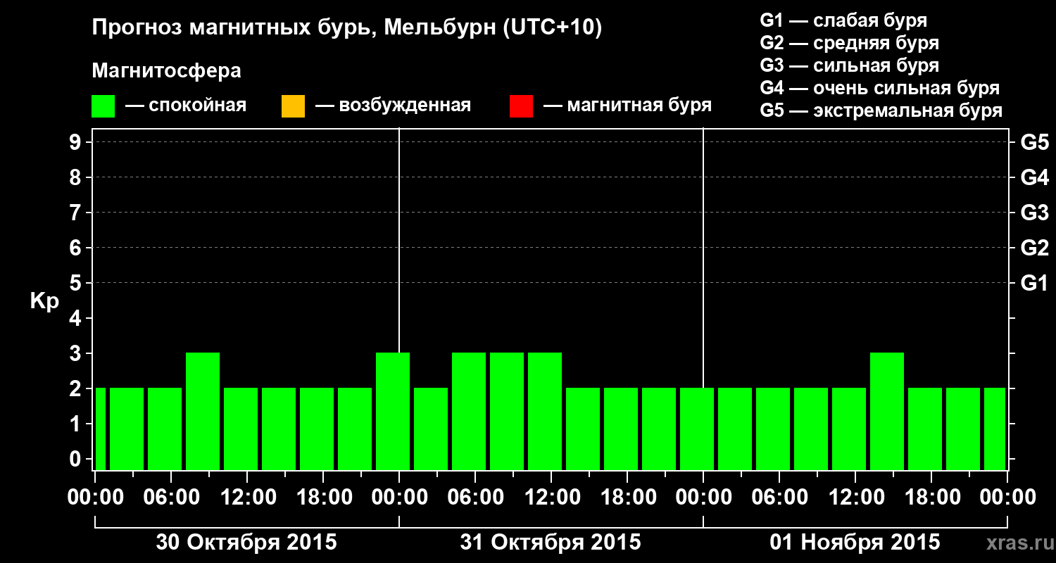 Прогноз магнитных бурь в Мельбурне — 30 октября 2015 года