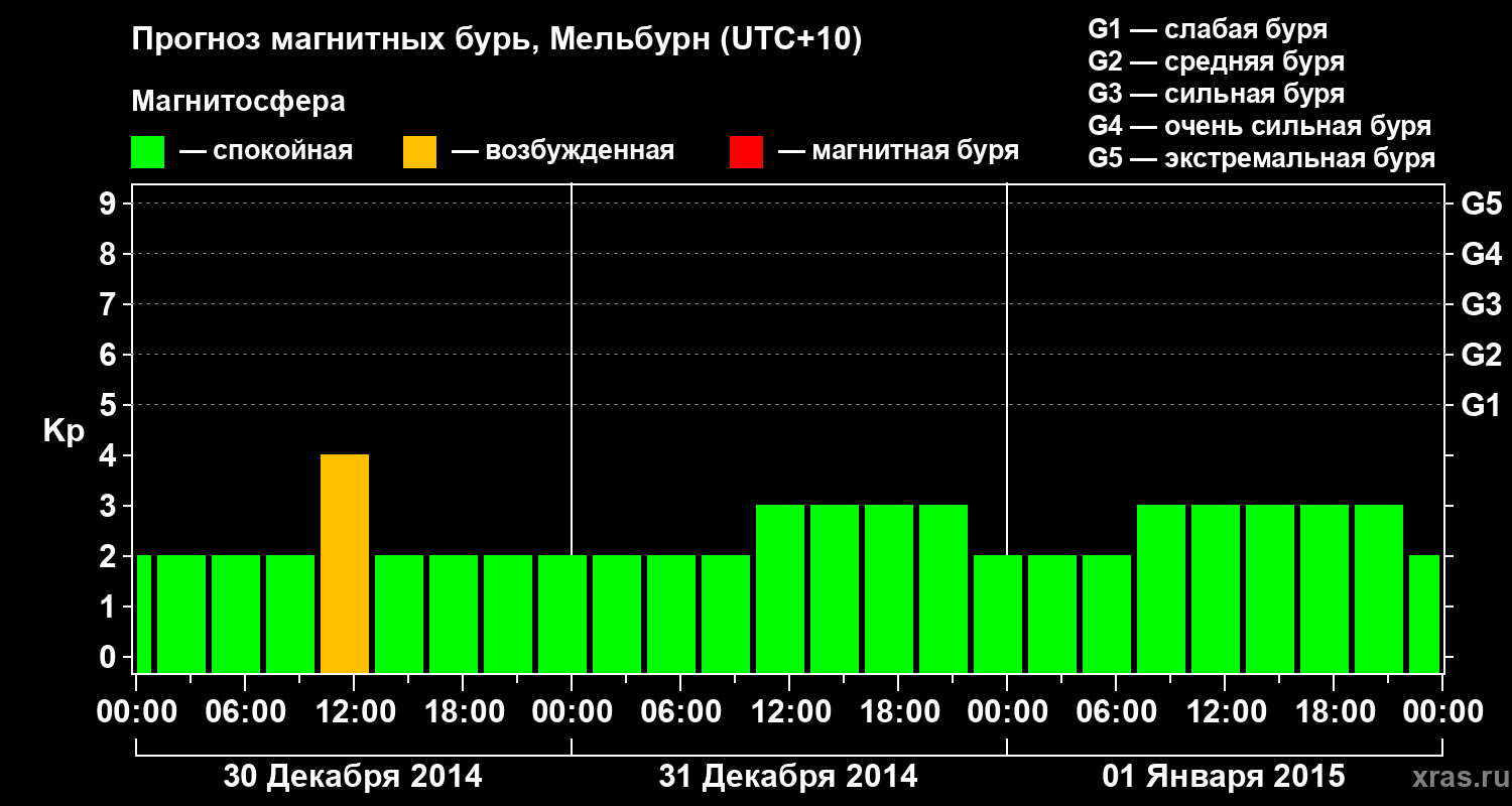 Прогноз магнитных бурь в Мельбурне — 30 декабря 2014 года