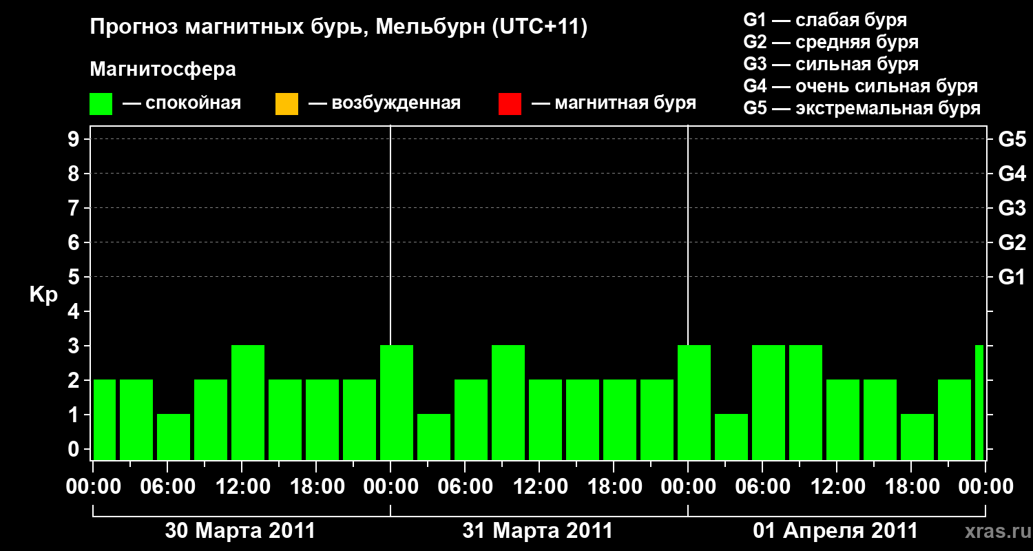 Прогноз магнитных бурь в Мельбурне — 30 марта 2011 года