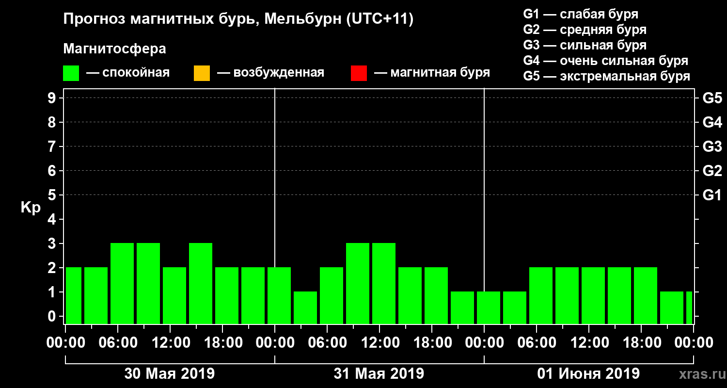 Прогноз магнитных бурь в Мельбурне — 30 мая 2019 года