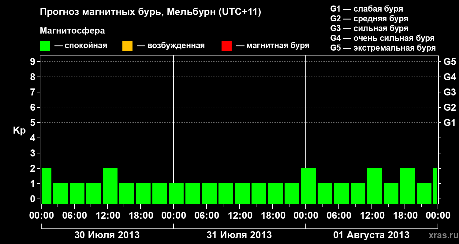 Прогноз магнитных бурь в Мельбурне — 30 июля 2013 года